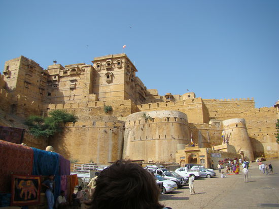 Nach vierstündiger fahrt, in welcher wir 250 km bewältigten sind wir im sehr schönen, grossen (das Zimmer ist in drei Räume unterteilt!) und komfortablen Familien- Hotel in Jaislmer angekommen! Die Stimmung hier ist durch die vielen Kinder die um einen herumhüpfen sehr entspannt, und da sie selbst eine alte "Herrscher" Familie sind, wird man mal nicht wie ein König, sondern wie ein Gast behandelt!