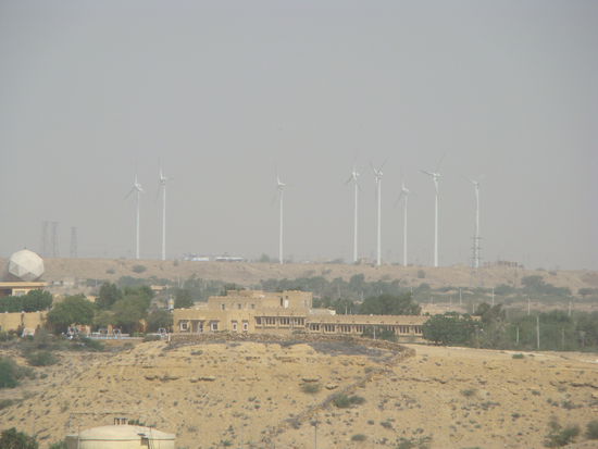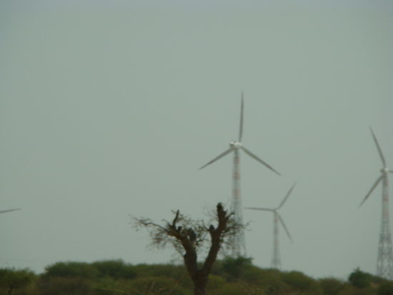Wir staunen immer wieder wie fortschrittlich die Inder sind, in der Khuri Wüste rund um Jaislmer sahen wir hunderte riesige Windfarmen.