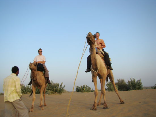 Am Abend machten wir einen Ausflug zu den Sanddünen der Tharwüste, welche wir auf dem Kamelrücken bewunderten. Von den Einheimischen lernten wir ihre spassige Sportart, den Dünenweitsprung, wobei meine Sonnenbrille in die Brüche ging und ich das Gefühl von sandigen Augen kennenlernen durfte