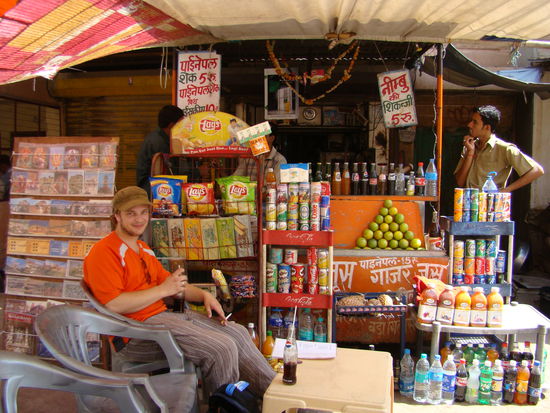 Am Morgen, während unserer ersten Einkäufe, Saree und massangefertigte Hosen, bestaunten und nach höflichem fragen betatschten die Indischen Männer interessiert Christophs neuen Carpet (Teppich).