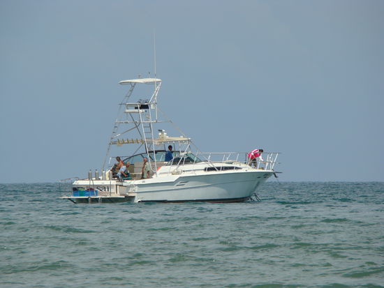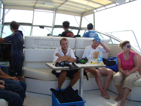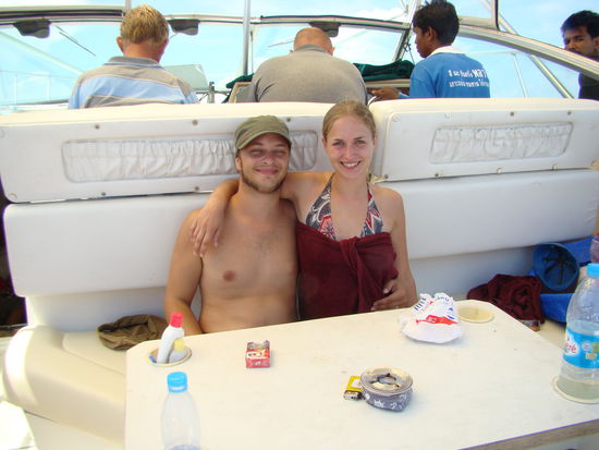 Wir konnten der Versuchung nochmals zu Tauchen, nicht widerstehen und es hat sich absolut 100% gelohnt!!! Wir fuhren mit einer grossen Yacht etwa eine halbe Stunde aufs Meer raus, dort tauchten wir zu viert ab, während Peace's Kinder und die restliche Crew schnorchelten. Wir konnten während des ganzen Tauchgangs einen Baby Walhai, 3.5-4m gross, beobachten, er kam so nahe ran, dass wir ihn hätten berühren können. Das zweite Highlight war eine schwarze Roche, ihr Körper war etwa gleich gross wie wir