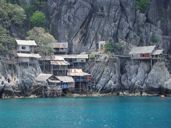 Auf dem Weg zu unserem nächsten Tauchgang, kamen wir an aus dem Meer ragenden Felsen vorbei, wo man nicht im Traum daran denkt, dass hier Menschen leben könnten und so staunten wir nicht schlecht, als wir die vielen Holzhütten (20km vom Festland entfernt!) entdeckten und uns Leute zuwinkten. Der zweite Tauchgang war dann leider nicht mehr so aufregend und die Sicht relativ schlecht.