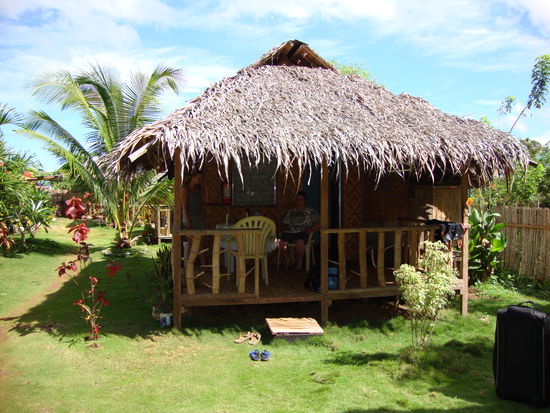 Wir kamen in einen einfachen, kleinen Bambusbungalow, in einem Resort mit hübscher Gartenanlage, 100m vom Strand entfernt unter. Der vielumschwärmte Alonabeach war eine Enttäuschung, wir wollten aber trotzdem ein bisschen ausspannen, und so spielten wir Karten, freuten uns an eigener Musik und vollführten Regentänze...
