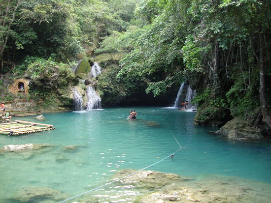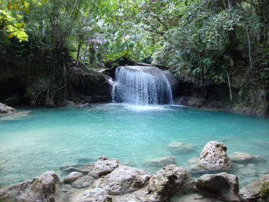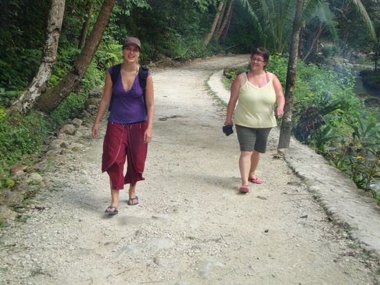 Am nächsten Morgen fuhren wir mit dem Bus zu einem Naturschutzgebiet mit Wasserfällen zu welchen wir circa eine Stunde schlenderten, hier gab's einige Restaurants und nach einem kühlen Bad, gingen wir eine halbe Stunde zum nächsten Becken. Wir genossen ein "Sprudelbad" und eine Cola, als wir gehen wollten, wurden wir von einer Tischrechnung von 200P fürs Tischbenützen überrascht, als die Frau unsere entgeisterten Gesichter sah, gab sie uns schnell einen Rabatt von 100P für kurzes sitzen...