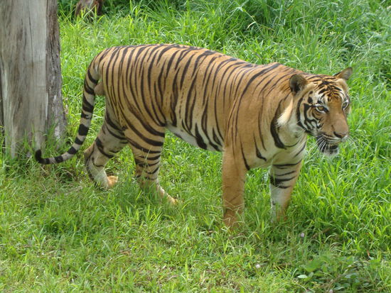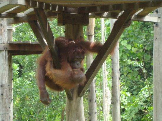 Wir fuhren mit dem Taxi in die Stadt zu Lucy's Homestay und gingen als erstes essen, wiedermal Begeisterung, hier lässt es sich wirklich leben...! Nachdem wir dick ausgeschlafen und gefrühstückt hatten (die meisten Lodges in Borneo sind im Bed and Breakfast-stil) schlossen wir uns einem Pärchen von unserem Hotel an, die noch Leute suchten um das Taxi zu teilen und fuhren in den Zoo, die meisten Tiere die hier leben, sind von Privatleuten und Zirkussen konfisziert worden.