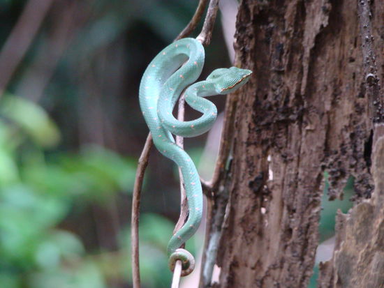 Wir konnten eine Eidechse? beobachten die gerade dabei war Eier zu legen und sahen eine kleine Schlange die reglos auf einem Ast "sass" und auf Beute wartete.
