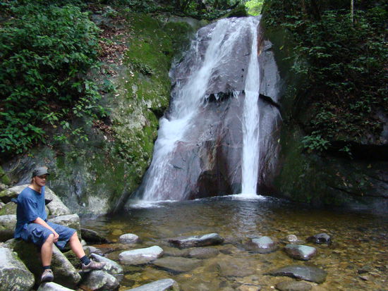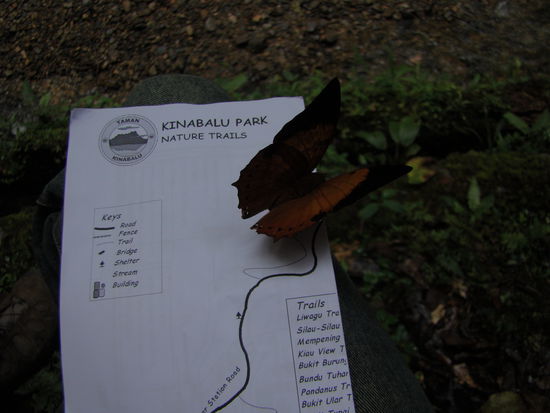 Am letzten Tag wurden wir noch ziemlich verregnet und Christophs Knie begann zu rebellieren, so waren wir froh auf halben Weg unserer längsten Wanderung (5 1/2h bis hierher) die einzige Strasse im Park zu kreuzen, wo wir einem Bus von Mount Kinabalu Besteigern zusteigen konnten und zurück zum Hauptquartier fuhren.