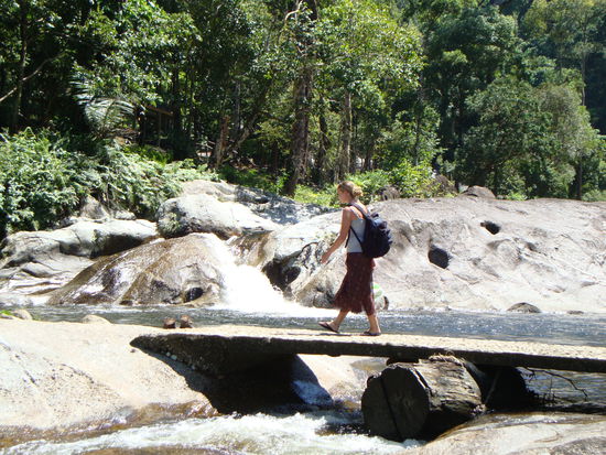 Nun gut, als wir unser Häuschen bezogen hatten und uns nach einer herrlichen Erfrischung in einem der Wasserfallbecken die Mägen knurrten, teilten uns die Park Angestellten mit Händen und Füssen mit, dass es innerhalb des Parks keine Verpflegungsmöglichkeiten gäbe.