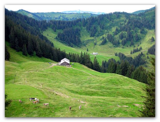 Zuerst musste der Weiherkopf (1665 Meter), anschließend das Rangiswanger Horn (1816 Meter) und zum Schluss das Ofterschwander Horn (1406 Meter) daran glauben. Eine Berg- und Taltour mit nicht gewolltem Ausgang. Geplant hatten wir den Abstieg ins Tal zwischen Rangiswanger Horn und Ofterschwander Horn hinunter nach Kierwang. Durch Missachtung der Wanderkarte sind wir letztendlich in Ofterschwand, das etliche Kilometer davon entfernt liegt, gelandet.