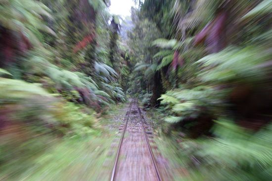 Allerdings wohl nicht mit dieser hier. Noch ein neuseeländisches Unikat. Die Lok aus der Box, mit der wir eine gemütliche Fahrt durch den Regenwald unternommen haben.