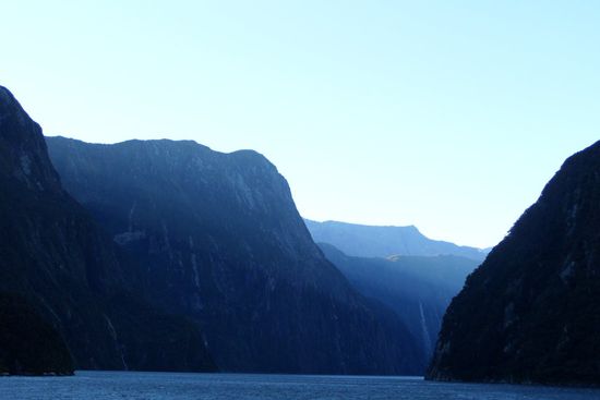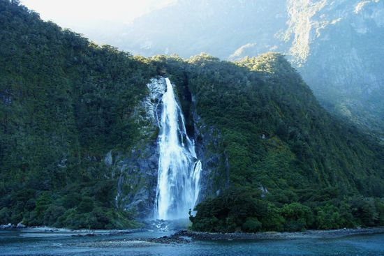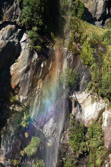 19.4.09 - Geschafft! Das Fjordland ist erreicht. Haben wir die bisherigen 1000km sehr schnell hinter uns gebracht, brauchen wir für die letzten 100km von Te Anau zum Milford Sound ewig, was nicht nur an den schlechten Straßenverhältnissen inklusive einem einspurigen Tunnel (eine Spur für beide(!) Fahrtrichtungen) liegt, sondern daran, dass wir alle 100m stehen bleiben müssen, um Bilder von der märchenhaften Landschaft zu machen. So muss die Vegetation ausgesehen habe, bevor die ersten Menschen Einfluss darauf genommen haben. Einfach unvergleichlich schön.