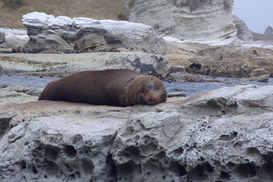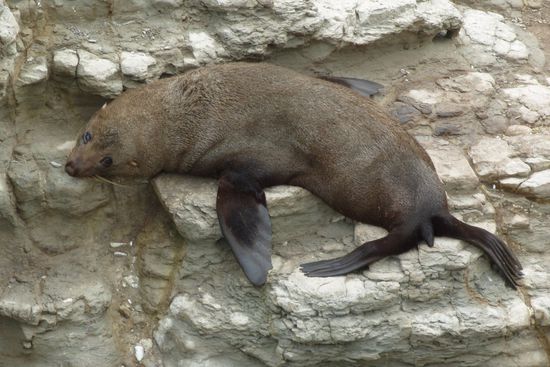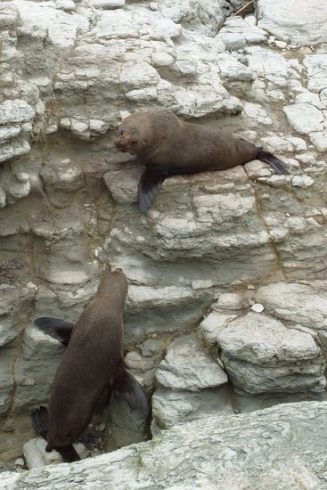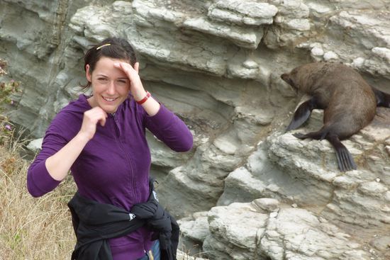 Lag da doch tatsächlich ein riesiger Seehund vor mir und brummte mich sehr böse an. Da wir zu Beginn des Weges ein Schild gesehen hatten, dass man sich nicht mehr als 10 Meter an die Seehunde nähern sollte, machten wir lieber mal nen Bogen um ihn. Denn es waren nur noch 2-3 Meter Abstand. Aber bei dem einen Bogen sollte es nicht bleiben...ich hatte das Gefühl, dass alle Seehunde Neuseelands gerade auf diesem Abschnitt ihre Mittagspause genossen haben. Also den Berg besteigen und hoffen, dass es besser wird.
