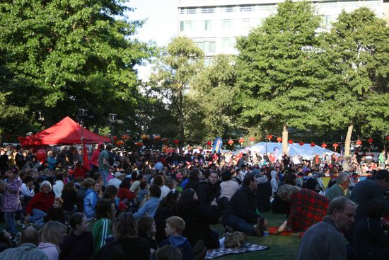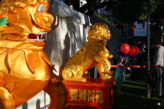 Sorry, aber wir hatten schon wieder ausgeschlafen. Das Fest begann schon Mittags und wir machten uns sofort nach dem Aufsteh'n auf den Weg dorthin. Wir ließen das Frühstück ausfallen, um direkt chinesisch mittagzuessen. Es war so viel los, dass wir uns entschieden zwischenzeitlich nochmal die Stadt zu erkunden und Kaffee trinken zu gehen. Ich weiß nicht, ob wir schon erwähnt hatten, dass der Kaffee hier ausgezeichnet schmeckt und man den ganzen Tag nichts anderes machen könnte, außer dazusitzen, Leute zu beobachten und eine Latte bzw. einen Long Black (schwarzer Kaffee) nach der/dem anderen zu trinken. Das machten wir aber heute ausnahmsweise nicht. Schließlich wollten wir ja die Laternen bei Nacht sehen. Und es lohnte sich, den Kaffee links liegen zu lassen... es sind dort ein paar schöne Schnappschüsse entstanden: