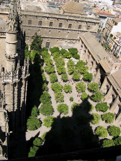 Der Patio de los Naranjos (Orangenhof) war der Hof der Moschee. Der achteckige Brunnen in der Mitte ist der Rest der islamischen Midha, des Brunnens für die religiösen Waschungen.