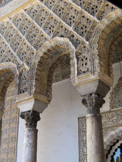 Der gegenüber der Kathedrale gelegene Alcazar war das Schloss der maurischen und später der christlichen Könige und wurde in seiner jetzigen Gestalt in der zweiten Hälfte des 14. JH. unter Pedro dem Grausamen durch maurische Baumeister errichtet.