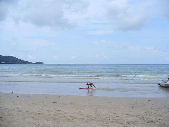 Da heute das Wetter nicht so mitgespielt hat, haben wir uns nur zeitweise am Strand aufgehalten und kleine Thaikinder beim Surfen ueben zugeschaut.