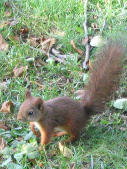 Tiere findet man mehr als bei uns. Ein Eichhörnchen, ein junges, trafen wir in Krisianstad im Park an der Oper. Es sammelte Pilze am Baumstamm, nachdem der hahn im Hühnergehege es weggejagt hatte. Es gab Raben auf den Straßen, Katzen, Hunde und im Wald Kreuzspinnen, Eidechsen und Rehe. Die Rehe sahen uns, als sie die Straße überkreuzten, eins lief nach links und eins nach rechts. Wie war es erleichtert, als es sah, wie wir warteten, bis es auch zu seinem Kumpel nach links hüpfen konnte. Am Meer gab es Muscheln, Möwen und Quallen. Spät am Abend entdeckten wir viele Kröten, die vom Meer in die Dünen liefen. Einmal fanden wir eine tote Möwe am Strand.