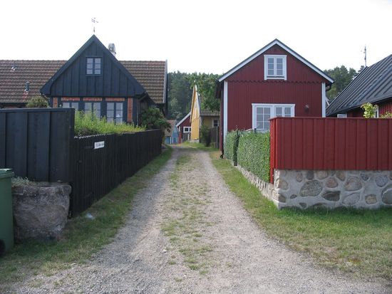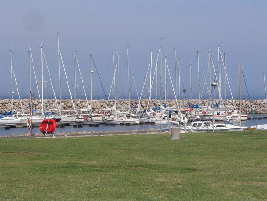 Simrishamn und Vitemölla lud uns ein, weil Tims Onkel in Simrishamn lebt und Vitemölla der Ferienort war, wo er als Kind oft war. Beides liegt an der Ostsee südlich von Yngsjö. Vitemölla ist ein kleines Fischerdorf mit Badestrand ohne Laden oder andere Möglichkeiten, Geld in die Wirtschaft zu bringen. Es hat eine kleine Promenade mit einem Fischerboot vor einem alten Reeddachhaus. Der Hafen hat kleine Yachten. Fischer holten ihre Netze raus, als wir kamen und hatten vor, aufs Meer hinauszufahren um Fische zu fangen.