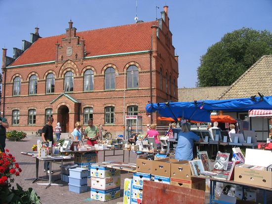 Simrishamn ist größer. Simrishamn ist ein Fischerstädtchen mit kleinem Hafen, wir fanden dort Kisten aus Cuxhafen. Es ist ein kleines Industriegebiet, daneben der kai mit Freßbüdchen, dann der Yachthafen direkt am Hotel Svea. Simrishamn drin ist eine Stadt mit kleiner Fußgängerzone. Am Platz fand ich einen kleinen Bücherflohmarkt, da kaufte ich einen Bildband über das schwedische Volk, Fotos von einer Person, die über sich selbst berichtet. Ich konnte den Text verstehen.