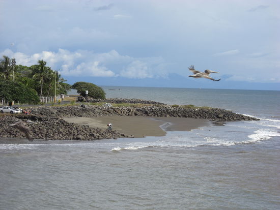 Auf der Fährfahrt, die mir sehr gefallen hat, kam ich mit einer Tica ins Gespräch, die mir anbot bei ihr zu schlafen, wenn ich nach Los Chiles komme. Ich weiss noch nicht so recht was ich mit dem Angebot anfangen soll, da hier fast jeder, auch die Ticos, davor warnen Fremden zu vertrauen. Andererseits habe ich bisher nur gute Erfahrungen mit den Ticos gemacht. Besagte Tica hat mich in Puntarenas angekommen, an die Bushaltestelle gefahren, mich also nicht ausgeraubt! Dort angekommen ist gleich ein Taxifahrer auf mich zu gekommen, der mir zeigte wo mein Bus abfährt, den ich dann um Haaresbreite verpasste. In dem Taxifahrer erwachte dann Michael Schuhmacher, er raste dem Bus hinter her, weil er meinte es sei besser für mich den Bus noch zu bekommen, bevor ich im Dunkeln weiter fahren muss. Auch hier war ich unsicher, weil ich dachte er will mich vlt. abzocken, dabei wollte er gerade mal 1000 Colon für die wagemutige Verfolgungsjad und ja es war wirklich gut diesen Bus noch bekommen zu haben!