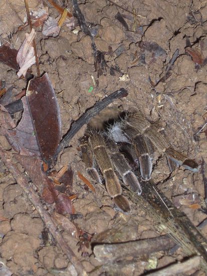 Mein Highlight war die Entdeckung einer Riesenspinne, ich glaube es war eine Terantula oder eine Vogelspinne, ich kenne mich da nicht so aus. Ich durfte ein Stoeckchen in ihre Hoehle stecken, so dass sie das Stoeckchen festhielt und sich aus der Hoehle locken liess - das hat mich sehr beeindruckt!