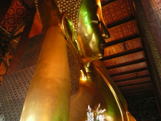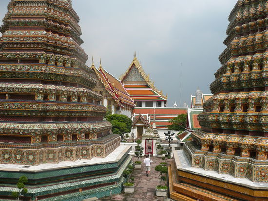 Die Tage vergehen ziemlich schnell. Wir haben wir uns in Chinatown verlaufen. Millionen gerueche stiegen in meine Nase. Es war laut, hektisch, und tausend kleine Staende, die alles verkaufen was man sich vorstellen kann. Wir hatten nichtmal ein Karte. Die einzigen Weissen, die wir trafen waren dagegn top ausgestattet. Selbstverstaendlich deutsche. Wir fanden den Weg zum Pier. Tempel Wat Pho dagegen war so wunderbar ruhig. Keine Grossstadt in Sicht oder Hoerweite. Sehr gemuetlich. Weniger gemuetlich war meine Thaimassage danach. Ich hatte einen Ladyboy als Masseur/ Masseuse?? Ich war mir noch ein wenig unsicher ob ich das gut oder schlecht fand. Am Ende war es egal. Hauptsache die Schmerzen in meiner Schulter verschwinden. Er / sie hat es geschafft. Ich lief aus dem Laden und dachte meine Kniee sind Pudding. MMMmhh nur zu empfehlen. Ich ging erstmal zuruek zum Hostel. Alle hockten vorm fernseher - leider verstehen wir kein thai. Unser Hotelbesitzer meinte, das was wir sahen ist 2 Strassen weiter. Wir sollten nicht mehr ausgehen. Am naechsten Morgen war ueberall Polizei.