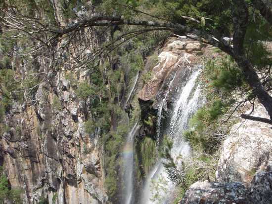 Frueh starteten wir in Tag 2 an dem wir einen Tagesausflug nach Nimbim gebucht hatten. Um 10 Uhr sammelte uns ein Bus an unserem Campingplatz ein. Die Fahrt dauerte ca. 1 1/2 Stunden und fuehrte mitten durch den Regenwald vorbei an einem Wasserfall ueber kleine sich daher schlaengelnde Strassen, die durch ihre Schlaegloecher meinem Vordermann Uebelkeit bescherte.