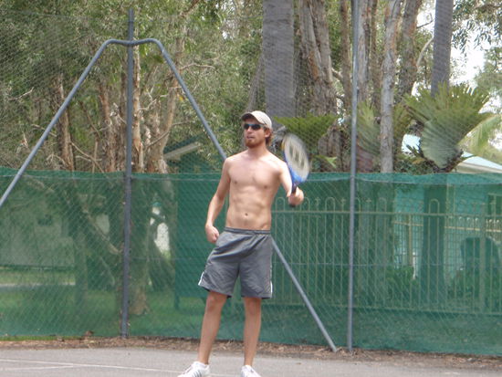 Auf unserem Nachhauseweg vielen schon die ersten Donnerschlaege und wir schafften es gerade noch rechtzeitig vor Regenanbruch in unser kleines zu Hause. Dieses mal hatten wir die Rechnung aber ohne unser Zelt gemacht denn es regnete unaufhoerlich rein. Waehrend ich schlief zog es Alex dann vor in den Waschraum auszuziehen welches im Nachhinein auch eine gute und trockene Alternative darstellte. Am naechsten morgen war deswegen auch erstmal wieder Tennisspielen angesagt waehrendessen unsere Sachen in der Sonne trocknen konnten.