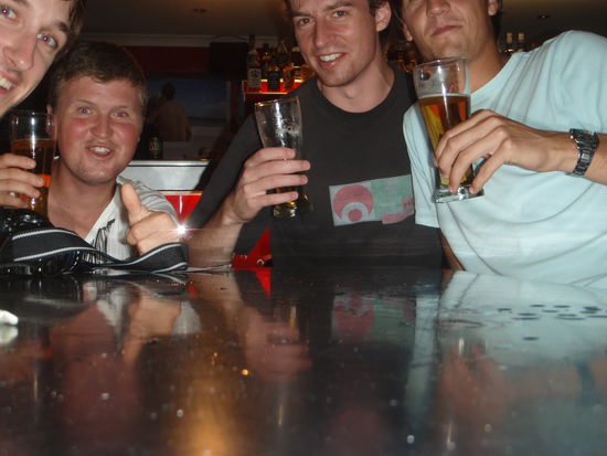 Das war glaube ich der 2te abend in Cairns. Nachdem wir uns ein Gratis Meal im Woolshed abgeholt hatten und nicht genau wussten wohin und durch zufall auf nen Laden mit dem nem komischen Namen in dem auch BUMS drin vorkommt. Also Hintern. War aber nicht wie vermutet irgend ein Table-Dance laden oder so. war absolut garnichts los. Warum auch immer. DENN: Wir wollten ein Bier bestellen und die hatten nen spezial offer: Ne Art Pitcher (1.14Liter) Bier fuer 5$ (1Euro sind ca 2$). Normal ist Bier, selbst im BOttelshop garnich mal soo guenstig. Naja und da haben wir dann halt richtig zugeschlagen