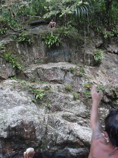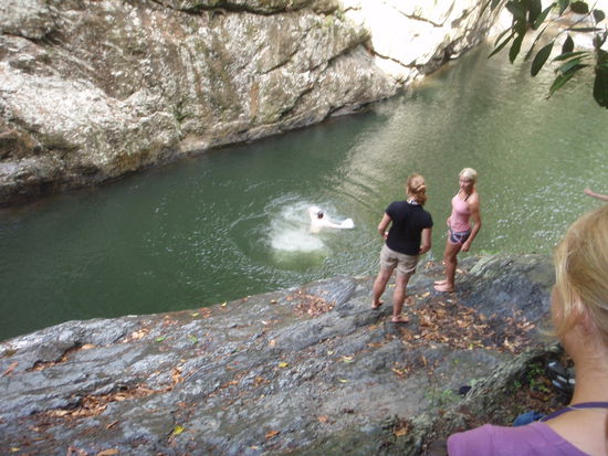 Die eigentliche Attraktion bei den Cascades war eigentlich weniger die schoene Natur, sondern eher die moeglichkeit von Fellswaenden ins Wasser zu springen! Unsere beiden Fuehrer, also Ben und sein Kumpel hatten da schon so einige Erfahrung und haben echt Stund spruenge hingelegt! Aber auch Tobi war neben den beiden beindruckend!