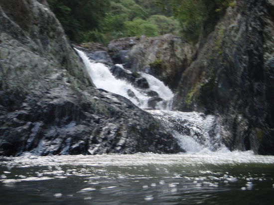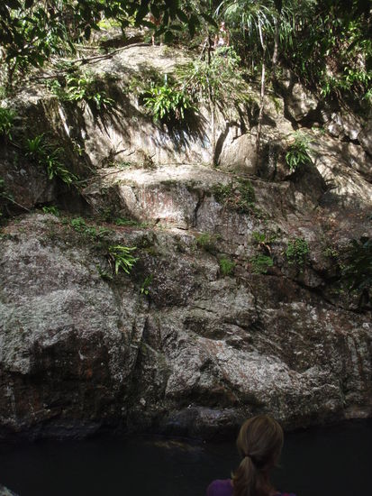 Wir waren mit Ben, dem 2ten Chef im Rosis, eigentlich auch nur ein Aussie auf Reisen, bei den Crystal Cascades im Regenwald. Also keine richtigen Wasserfaelle, sondern mehr so Stromschnellen.