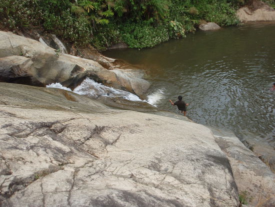 Auf unserem Weg machten wir einen kleinen Abstecher zu einem Wasserfall der inmitten des Dschungels gelegen war. In dem Wasserfall schwammen überwiegend Thais so das wir uns deutlich von der Masse abhoben. Sehr cool war das man die Steilen und glatten Klippen des Wasserfalls im Sitzen runter rutschen konnte und zum Schluss durch einen Kicker durch die Luft in den kleinen See am Fuße des Wasserfalls geschmissen wurde. .