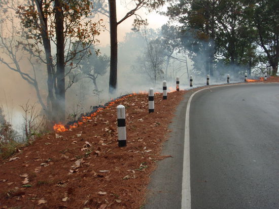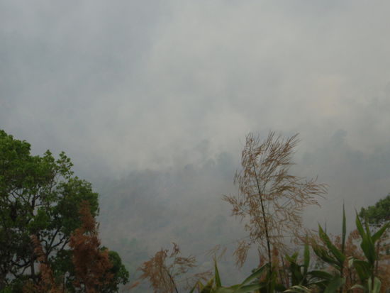Auf unserem Rückweg über den Bergpass hatte der Wind gedreht und das Rodungsfeuer hatte an Intensität zugenommen. Das war mal wieder was für uns. Mit dem Roller durch dichte Rauschschwaden!!!