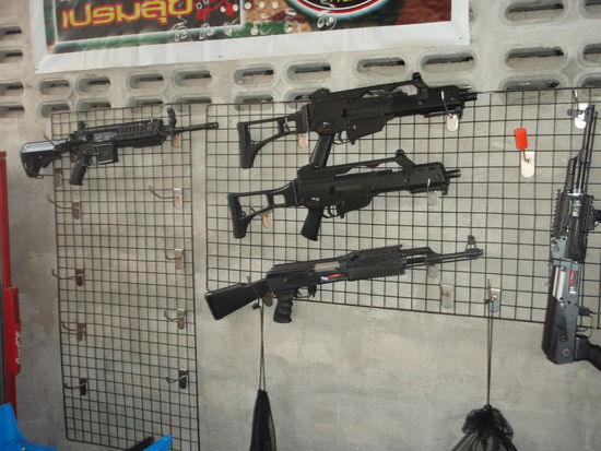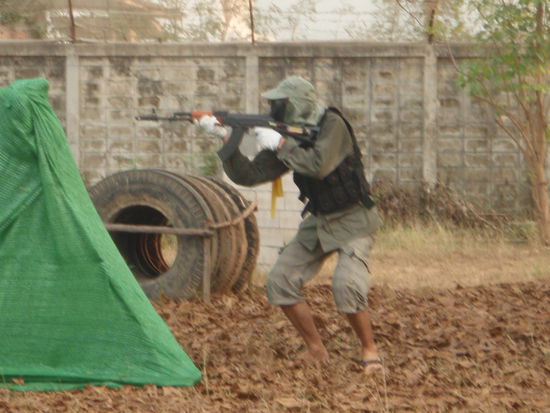 Unser Fahrer brachte uns zu einer nahe gelegenen Softair Shooting Range. Da es schon später Nachmittag war, hatten wir den Besitzer, seinen Sohn und die ganze Anlage für uns alleine. Hemd, Weste, Handschuhe und Maske angelegt und die Waffe der begierde ausgesucht ging es auf den eingezäunten abendteuer Spielplatz