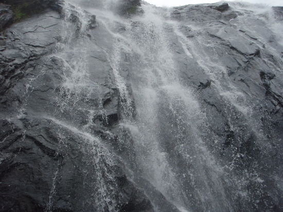 Heute morgen bekamen wir durch Hans, einen 70 Jahre alten Hostelmitbewohner den Tipp am Fusse der nahe gelegenen Wasserfaelle(Barron Falls) schwimmen zu gehen. Soll wohl einfach klasse sein. Er erklaehrte uns den Weg zu einem versteckten Pfad der uns die Schlucht hinab dirket zu den Wasserfaellen fuehrten sollte. Der kuerzeste Weg zum diesem Pfad fuehrt allerdings 2 km entlang der Eisenbahnschienen bis zu einer Touristenaussichtsplatform. Wir warteten also am Rand der Schienen bis der naechst Zug abfuhr und machten uns auf den Weg richtung Bahnstation. Relativ schnell fanden wir dort den Pfad der hinab in den Canyon und zum Fusse der Barronfalls fuehrte. Der Abstieg erwies sich als sehr aufregend da der Pfad teilweise sehr schmal und entlang mehrerer Abgruende verlief. Nach etwa einer halben Stunde erreichten wir endlich unser Ziel. Hier dauerte es natuerlich nicht lange bis wir unsere Badeshorts anhatten und unter den Wasserfall schwammen.