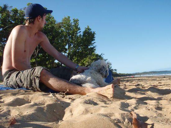 In Mission Beach haben wir dann Andi, den wir auch schon in Innisfails in unserem Hostel getroffen hatten, wiedergesehn. Wir haben dann hauefig Zeit zusammen verbracht. Am ersten Abend haben wir an nem kleinen Pool Tunier teil genommen... allerdings ohne Erfolg. Da es woechentlich statt findet und 200$ zu gewinnen sind waren natuerlich viele Profis anwesend. Tagsueber haben wir viel Zeit am Strand verbracht und uns in der Sonne wohl gefuehlt! Nicht nur den Menschen gefaellt es dort! Ein crazy Hund hat uns zwischendurch mal besucht und sich mit uns zusammen entspannt