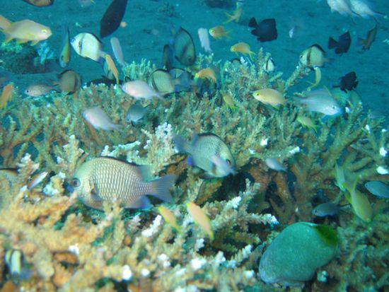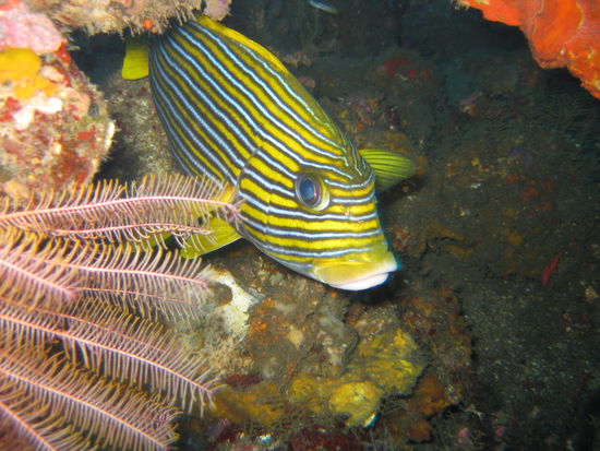das Wrack ist aus dem 2. Weltkrieg und insgesamt unglaubliche 120m lang, in mehrere Teile zerbrochen, die in einer Tiefe 6-30m zerstreut sind