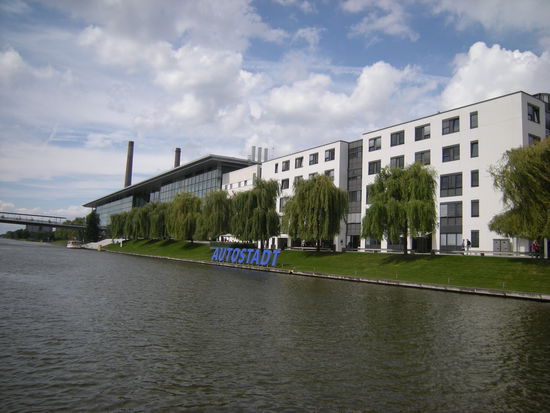 Vor der Schleuse Anderten haben wir eine halbe Stunde Aufenthalt, dann schleusen wir mit zwei Berufsschiffen aufwärts in die Scheitelhaltung. 14,5 m Höhe ohne Schwimmpoller ist schon ein bisschen Arbeit. Laut Betonnung befinden wir uns, auch nachdem wir mit der Schleuse Sülfeld 9 m abwärts geschleust sind, immer noch auf Bergfahrt. Die grünen Tonnen sind auf unserer Steuerbordseite. Vielleicht das einzige High Light des Kanals ist die Durchfahrt Wolfsburg mit dem großen VW-Werk.