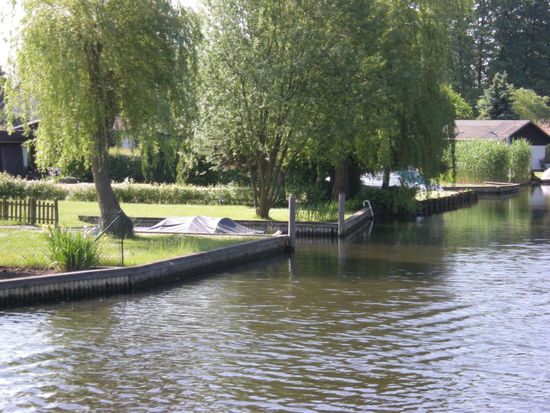 Vom Zeuthener See über den Großen Zug und Krossinsee in die Spree. Offizieller Name Spree-Oder-Wasserstraße. Dieses Stück alleine wäre schon den Abstecher wert. Auch auf die Gefahr, dass ich mich immer wieder wiederhole, es ist einfach traumhaft schön. Weiter geht es über den Seddinsee und Gosener Kanal in den Dämritzsee. Hier biegt man ein in die Müggelspree. Wer es nicht mit eigenen Augen gesehen hat, kann es nicht glauben. Wir sind schon durch viele wunderschöne Gebiete gefahren, doch die Müggelspree schlägt alles. Rechts von uns Klein Venedig. Man kann sogar an einer Stelle einfahren, aber wir sind zu groß dafür.