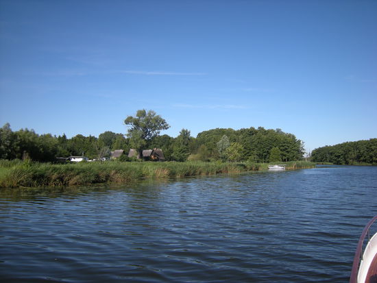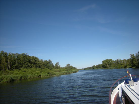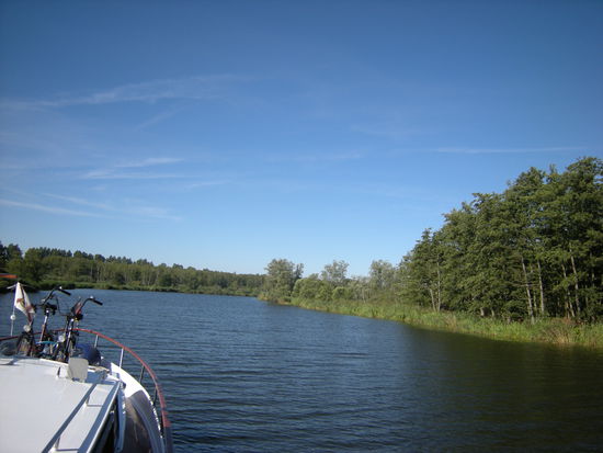 Wir sind recht einsam unterwegs. Manchmal kommt uns ein Paddler entgegen, später auch einige Sportboote. Die in der Karte ausgewiesenen Wasserwanderrastplätze sind alle für unsere Schiffsgröße ungeeignet.