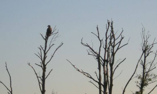 Kurz bevor wie die Peene verlassen, sehen wir ihn doch noch. Ein junger Adler sitzt ruhig auf einem Baum neben dem Fluss und lässt sich von uns nicht beirren.