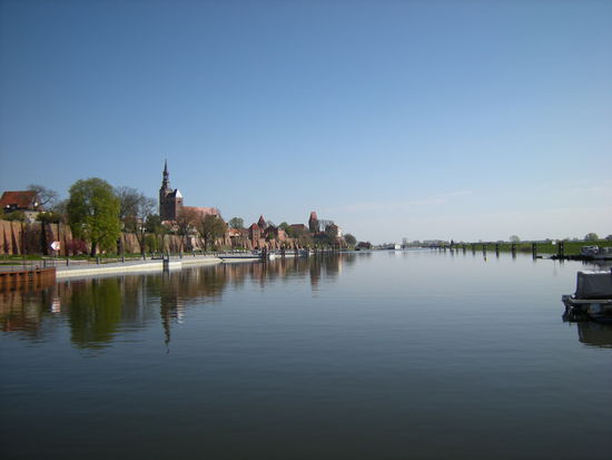 Hier werden wir zum ersten Mal mit der brutalen Wirklichkeit der Wende konfrontiert. Viele, sehr viele Häuser sind verfallen, stehen leer. Dazwischen wunderschön restaurierte Gebäude im Jugendstil und neue, moderne Protzbauten aus Glas und Beton für Banken und Geschäftemacher. Die Unterschiede sind erschreckend. Der Sportboothafen ist neu gebaut, wenn auch die Stege verwaist sind. Was uns bei den Preisen auch nicht verwundern kann. 1 € pro m Boot, 50 Cent für 50 l Trinkwasser, 50 Cent für 1 KW Strom, 2 € für Duschen und 2,60 € für den Müll. Ein bisschen happig für eine Stadt, welche nur wenige Sehenswürdigkeiten zu bieten hat. Immerhin kann sie sich rühmen, dass der berühmte Operetten-Komponist Paul Linke hier zum Musiker ausgebildet wurde. (Bis früh' um fünfe kleine Maus...)