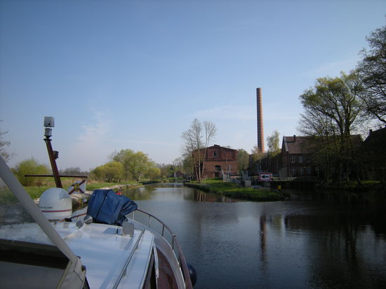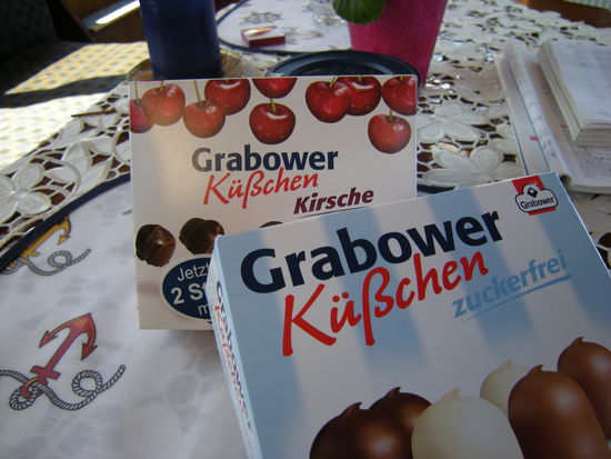Grabow hat eine sehr schöne, neue Uferpromenade. Gleich daneben sind mehrere Einkaufsmöglichkeiten und ein Eis-Cafe. Aus Grabow kommen die Küsse, nein, nicht Negerkuss oder Mohrenkopf, die richtige Bezeichnung ist Schaumkuss. 6,5 Millionen Schaumküsse können täglich hier produziert werden. Wer will, kann gleich einen Sack voll bei der Fabrik kaufen. Vielleicht die zuckerfreie Sorte, um sein Gewissen etwas zu beruhigen? Also ein richtig guter Platz, nicht nur um auf die Öffnung der Hubbrücke zu warten. Sie öffnet nach Anmeldung alle 1,5 Stunden. So richtig gut funktioniert sie nicht immer. Heute braucht sie zwei Anläufe, bis sie sich endlich hebt. Dafür haben wir gleich in der nächsten Automatik-Schleuse Zwangsaufenthalt. Manchmal fahren wir durch die Elde, dann gluckert sie wieder fröhlich neben uns her. Vor der Schleuse Hechtsforth mündet sie in den Kanal. Sie bringt Schlamm mit und wir hoppeln zum ersten Mal durch den Dreck. Sie wären schon am Baggern, sagt uns der Schleusenmeister. So wird dieses Problem nur vorübergehend sein. Die Wasserwanderrastplätze unterscheiden sich von Jachthäfen meist dadurch, dass die oft Strom und Wasser anbieten, häufig aus dem Münzapparat, aber selten Sanitärräume. Trotzdem haben die meisten ihren Preis.