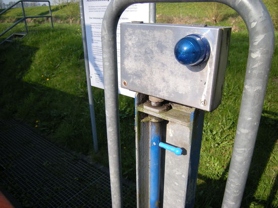 Die bemannten Schleusen der MEW haben keinen Funk. Telefonisch bitten wir den Schleusenmeister der Schleuse Dömitz die Hebebrücke für uns zu öffnen. Das Maß an der Spundwand zeigt eine Höhe von 3 m, da müssten wir alles abbauen.