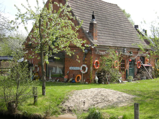 Klappbrücke und Schleuse mit dem lustigen Namen "Findenwirunshier" werden von einer Schleusenmeisterin bedient. Zwei Brüder trafen sich nach langer Trennung zufällig an diesem Ort wieder, daher der Name. Sie siedelten sich hier an, bauten eine Mühle und ihre Nachkommen leben immer noch hier. Der Wasserwanderrastplatz "Find's hier", kurz dahinter, liegt wunderschön an einer Wiese. Schleuse Eldena ist eine Baustelle. Im Mai 2008 soll sie fertig automatisiert sein, erzählt uns der Schleusenmeister. Jetzt begleitet ein Betriebsweg den Kanal bis Grabow, geeignet wenn sich die Crew Körper ertüchtigen will. Die Fahrt ist unheimlich beschaulich. Wie ein Wiesenbach schlängeln sich Elde oder Kanal durch Föhren- und Birken-Wälder, durchbrochen von Maulwurfswiesen. Wenige Ansiedlungen. Kraniche stehen in der Wiese, manchmal Rehe und Karnickel. Störche und Greifvögel kreisen über uns. Es ist Natur pur.