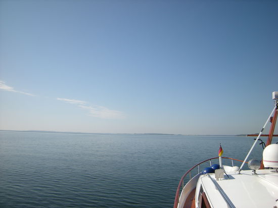 Eine riesige Wasserfläche liegt vor uns. Das kleine Meer. Seine besondere Form bewirkt, dass es im Grunde nur ein Ost- und Westufer an der Müritz gibt. Der größte Teil des Ostufers gehört zum Müritz Nationalpark und ist großflächig abgesperrt. Dieses Ufer ist sehr flach, teilweise kann man 250 m in den See hineingehen und hat immer noch Grund. Es hat recht viele Untiefen, gefährlich flache Stellen mit steinigem Untergrund. Navigation ist erforderlich. Und sehr viel Um- und Vorsicht, wenn man das betonnte Fahrwasser verlässt. Die Müritz heißt nicht nur so, sie hat auch die Eigenschaft eines kleinen Meeres. Durch Thermik können sich im Sommer sehr rasch Gewitter bilden. Bei Wind ist die kurze steile Welle in Nullkommanix da.