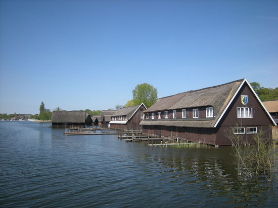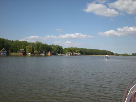 Eine wundervolle Fahrt bringt uns quer über den See ins Hafendorf Marina Müritz im Claassee. Die Charter-Firma Kuhnle Tours (www.kuhnle-tours.com) mit einer Charter-Flotte von ca. 130 Booten hat hier ihren Sitz. Sie machen Bootfahrern ein interessantes Angebot. Man kann eines ihrer Hausboote kaufen. Man bezahlt das Boot, es wird auf den Eigner eingetragen, bleibt aber 9,5 Jahre in der Obhut der Firma Kuhnle. Sie kann es auf eigene Kosten verchartern und muss es instand halten. Kuhnle zahlt in dieser Zeit die Kaufsumme zu 96 % zurück. Dann kann der Eigner das Boot übernehmen, praktisch ein Bootskaufs zum Nulltarif. Statt Zinsen kann der Eigner jedes Jahr 3 Wochen in der Hauptsaison auf seinem Boot Urlaub machen, oder zweimal in Vor- oder Nachsaison. Kein schlechtes Geschäft für beide.