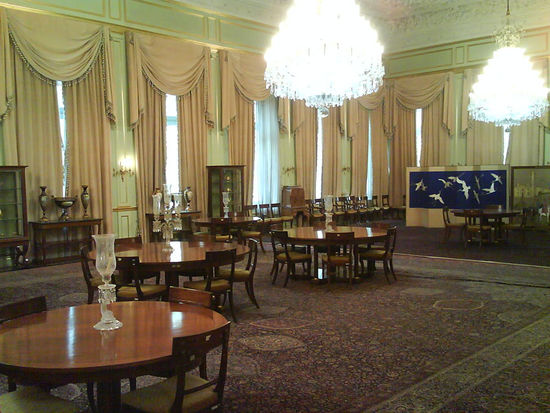 Die Sa'dabad-Paläste sind zu Fuß von meiner Wohnung aus zu erreichen, so dass ich versuchen werde, sie alle vormittags an den Tagen, an denen ich nachmittags meinen Sprachkurs habe, zu besuchen. Es sind mehr als zehn Paläste und sie liegen inmitten eines großen Parkgeländes und waren die Sommerresidenz der letzten Schahs. Heute beherbergen die meisten von ihnen verschiedene Sammlungen oder sind selber 'Ausstellungsstück', in denen eine gewisse Dekadenz der ehemals herrschenden Klasse besichtigt werden kann. Bisher habe ich den "Weißen Palast" mit dem Museum der Nation besichtigt, und das "Militärmuseum".