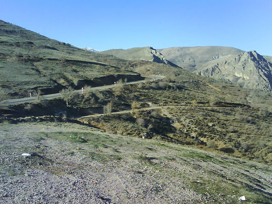 Wir hatten mangels Alternativen(die Touristeninformation hatte schon... geschlossen) in unserem Hotel eine Tour in das Tal Alamut zu zwei Festungen gebucht und wurden um 8 Uhr morgens vom Fahrer abgeholt. Und nachdem wir alle Formalitäten an der Rezeption erledigt(und die Rezeptionisten geweckt) hatten ging es endlich los. Vor uns lagen zwei Stunden Fahrt durch das Alborzgebirge. Qazwin liegt in auf einer Ebene und so hatten wir eine eindrucksvolle Fahrt das Gebirge hinauf, über Serpentinen, Pässe und immer dicht am Abgrund, die wir nur für einige Fotostopps unterbrachen. Die Landschaft ist sehr eindrucksvoll. Auf den höheren Bergen liegt Schnee, während auf den niedrigeren Bergen nach den Regenfällen der letzten Wochen frisches Gras aufläuft und die vertrocknete Vergetation des Sommers durchdringt, sozusagen ein zweiter Frühling. Die Fahrt führte uns auch durch einige Dörfer, in denen viele Häuser neu und erdbebensicher gebaut wurden, bis wir endlich das Dorf am Fuße der Festung Alamut erreichten.