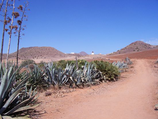 So bauten wir in Ruhe ab, bezahlten und verließen den Campingplatz. Noch schnell ein paar Fragen bezüglich der Busverbindungen nach Almeria bei der Touristeninfo(Busse fahren von Las Negras Mo.-Fr.) und dann ging's, nun zu viert, mit dem Shuttlebus zur Playa de los Genoveses (Die Fahrt ist kostenlos, allerdings muss man sich in einer kleinen Bretterbude am Abfahrtsplatz Tickets dafür holen).